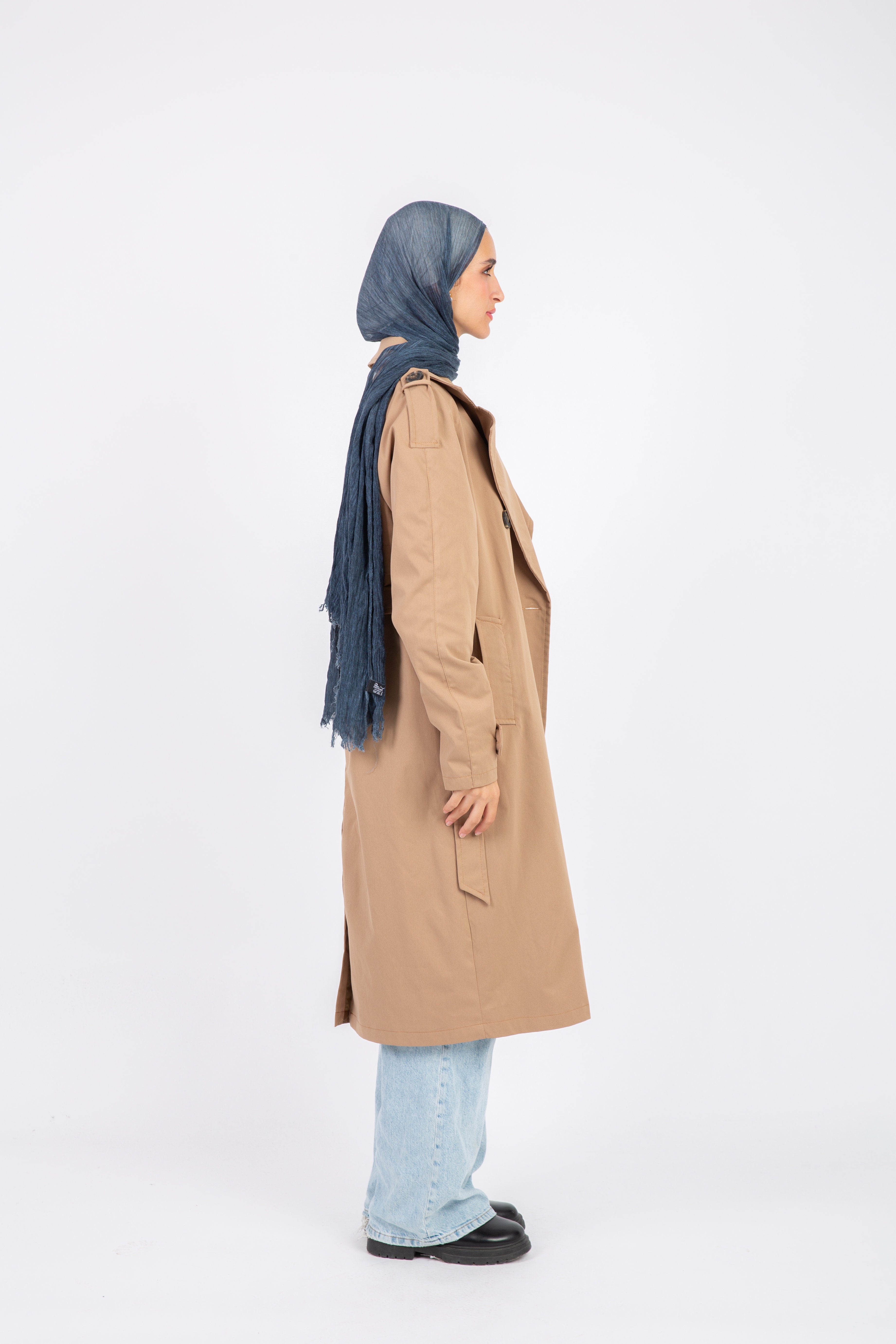 Made from high-quality imported gabardine fabric, featuring a classic trench cut that suits both everyday and formal looks. The fabric is lightweight and comfortable, with a practical and relatively loose design that allows freedom of movement, suitable for up to 110 kg.